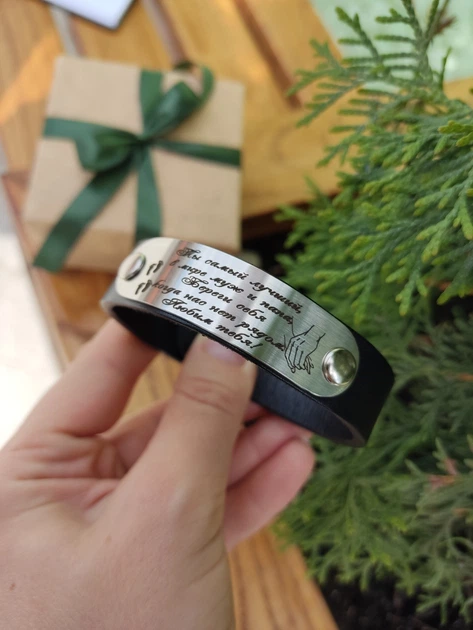 Виразіть свою індивідуальність і завершіть свій образ з чоловічим браслетом з гравіюванням! Цей аксесуар стане чудовим подарунком для вашого коханого, друга або брата. Ви можете вибрати його як символ вашої дружби або просто як вираження вашої поваги та шанування.