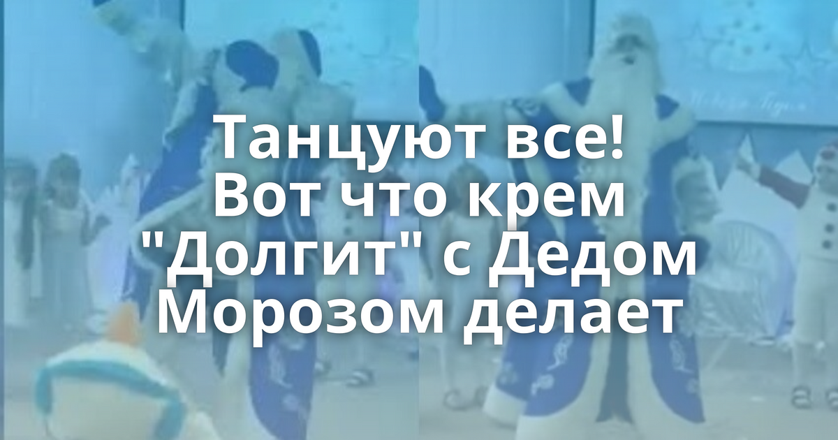 Танцуют все! Вот что крем Долгит с Дедом Морозом делает . Танцуют все! Вот что крем "Долгит" с Дедом Морозом делает (1 фото + 1 видео) Это раньше Дед Мороз был степенным старичком, которого едва хватало на новогодний хоровод . Нынешние волшебники дадут фору кому угодно!