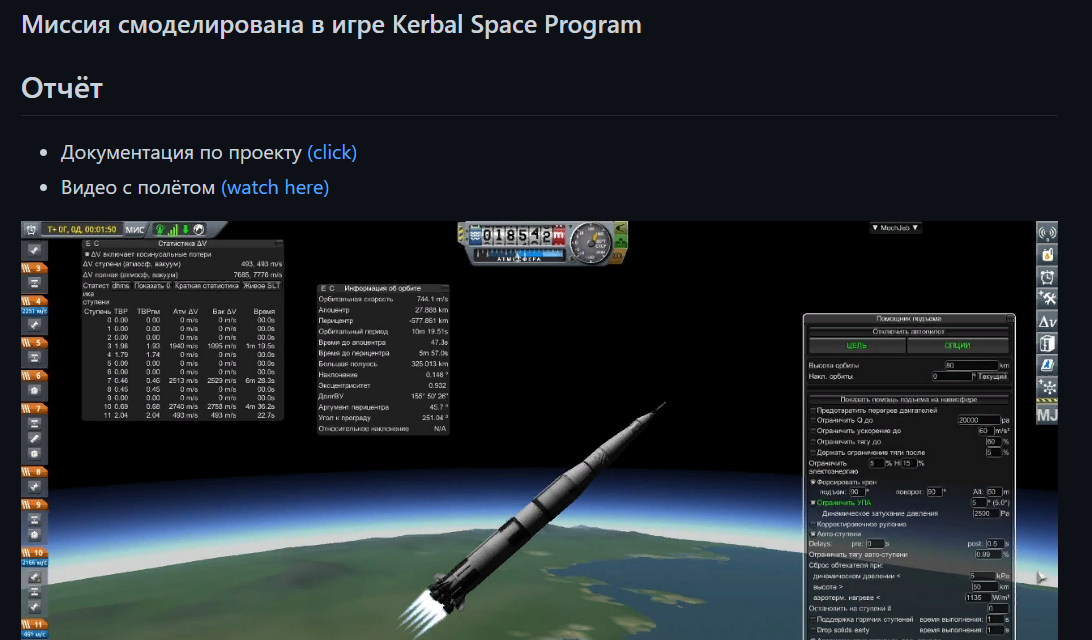 Посмотреть контент от Море ясности (выход на орбиту) (подробная сборка корабля) (взлет корабля + параметры полёта) (расчёты заходов на орбиту) (на канале их не так много, а в этом списке в принципе всё, что может быть важным).