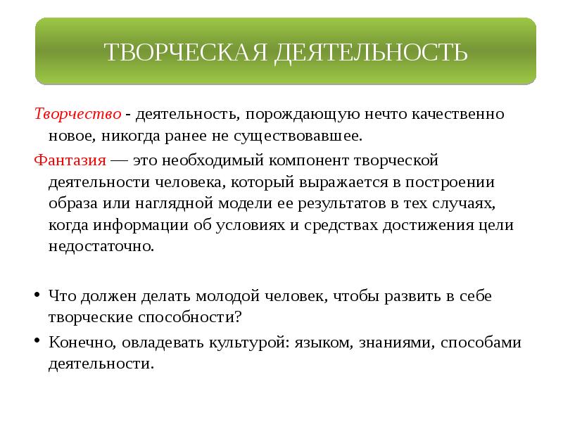 Что называют творческой деятельностью