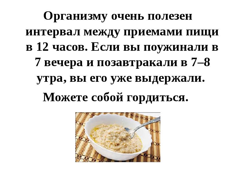 Что прием пищи происходит в