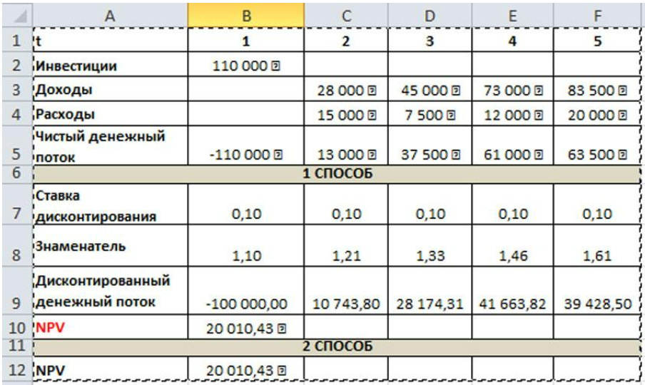 Рассчитывают NPV, если требуется: