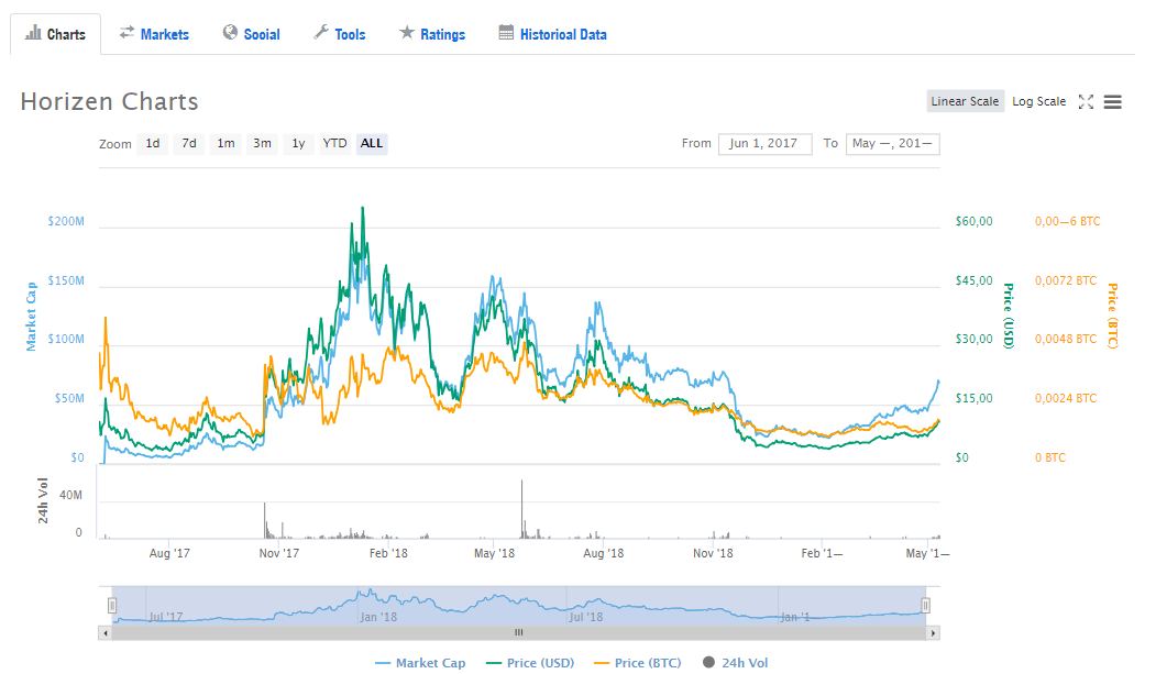 Horizen не проводил ICO. Вместо этого, Horizen (ранее известный как ZenCash) форкнулся от Zclassic (ZCL) 23 мая 2017 года в блоке 110 000. В это время, все держателям ZCL, получали ZEN, в соотношении 1:1.