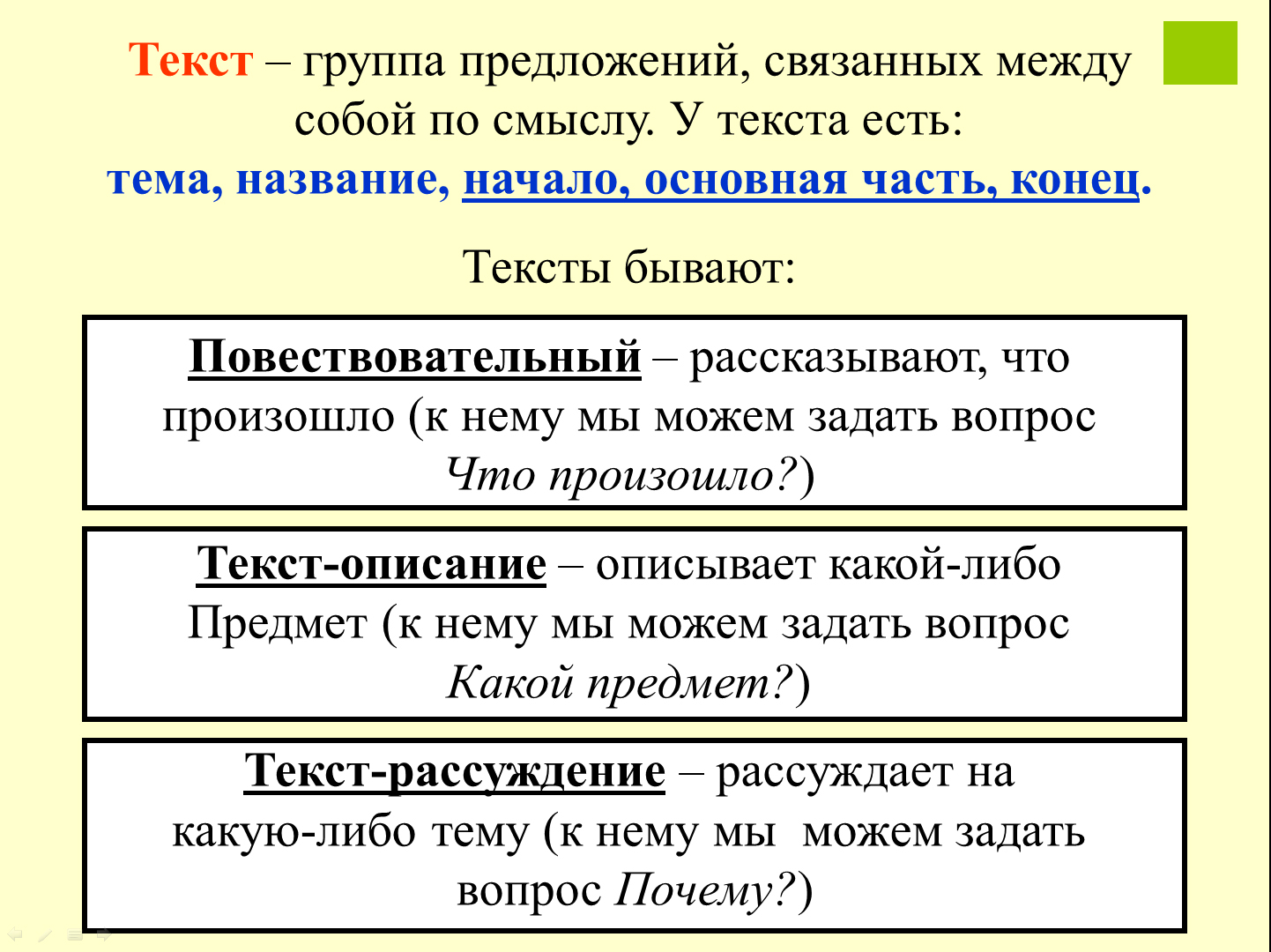 Что такое тип текста 6 класс