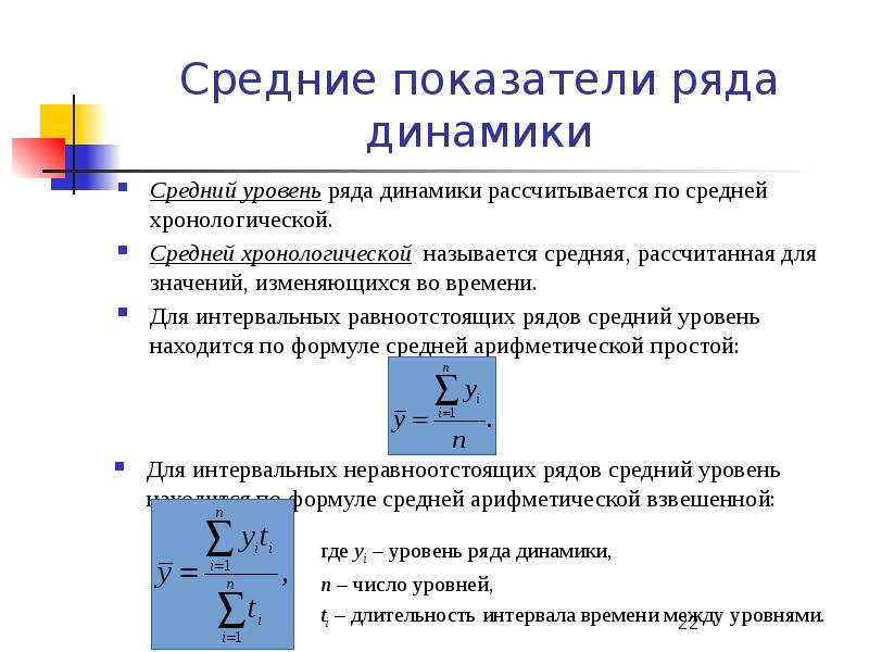 Что такое уровень ряда