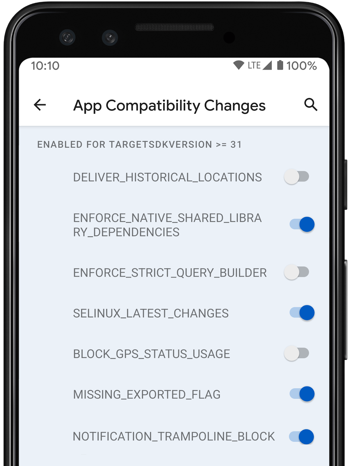 Сейчас также самое время приступить к тестированию на совместимость и определить любые работы, которые вам предстоит выполнить. Мы рекомендуем выполнить эту работу заранее, чтобы вы могли выпустить совместимое обновление для Android 12 Beta 1. На данный момент нет необходимости изменять целевойSdkVersion вашего приложения, но мы рекомендуем использовать behavior change toggles (переключатели изменения поведения), чтобы получить предварительное представление о том, как изменения в Android 12 могут повлиять на ваше приложение .