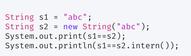 Следовательно, s1==s2.intern() вернет true.