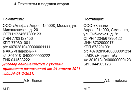 Чтобы не было разногласий
