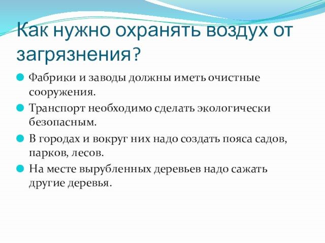 Чтобы воздух был чистым нужно