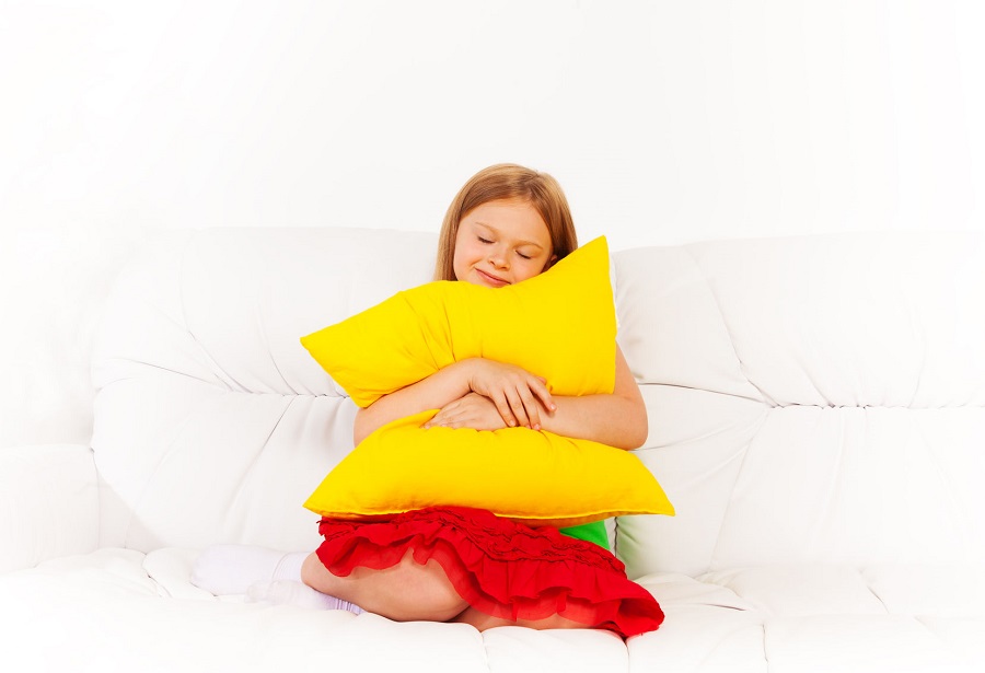 Чудесная девчушка на подушках
