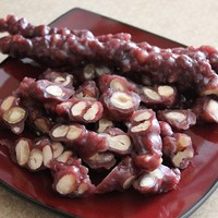 Чурчхела - традиционная восточная сладость, родом из Грузии . Ее готовят из виноградного сока и фундука или грецких орехов . Для загустения добавляют крахмал и кукурузную муку .