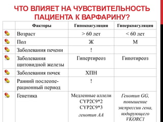 Чувствительность к варфарину, что это такое? Подробнее в базе знаний медицинского центра . . .