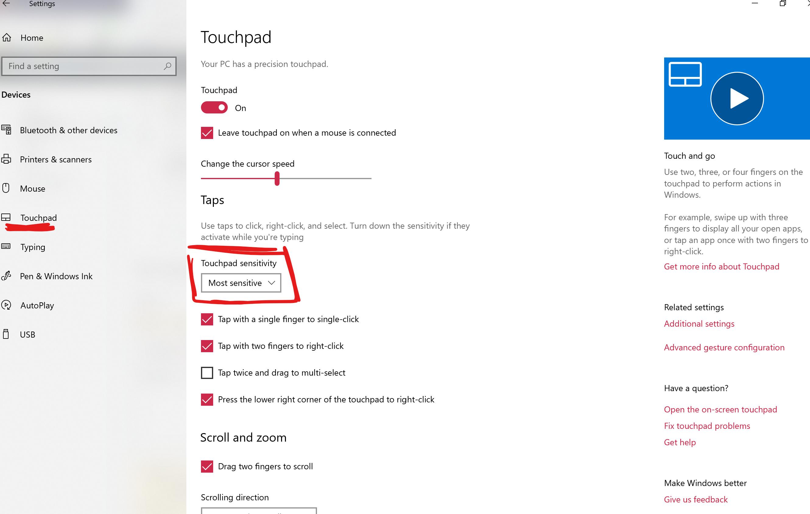 Чувствительность тачпада