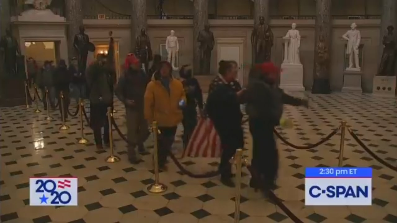 Иронично, что в наличие некого большого плана верили как левые, так и сторонники QAnon. Но никакого плана на самом деле не было. Трамп говорил многое, но он никогда не планировал путч. Следовали ли действия после его громких слов хотя бы раз? Его сторонники были толпой без какого-либо лидера — большинство пришло попротестовать и ничего больше. На видео, запечатлевших события того дня, мы можем видеть как сторонники Трампа спокойно ходят по капитолию, не выходя за пределы установленных для туристов ограждений из бархатных верёвок. Члены Конгресса представляют гораздо большую опасность для этих статуй, чем любой из “восставших”.