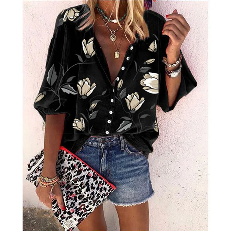 "CINESSD Women Print Tops Boho Blouse Blue Turn Down Collar Long Sleeves Single Breasted Button Cardigan Loose Casual Plus Blouse" * Buy Now Just For 14$