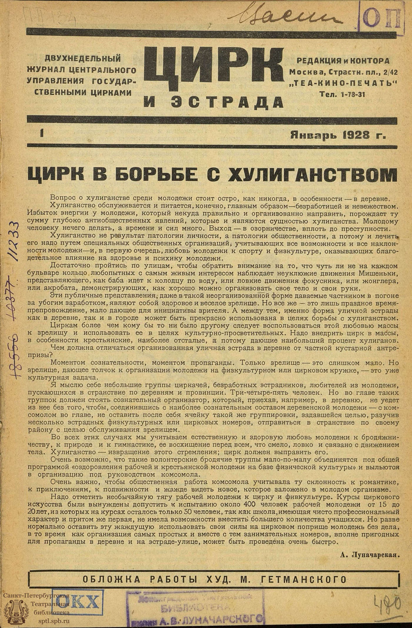 А. Луначарская.