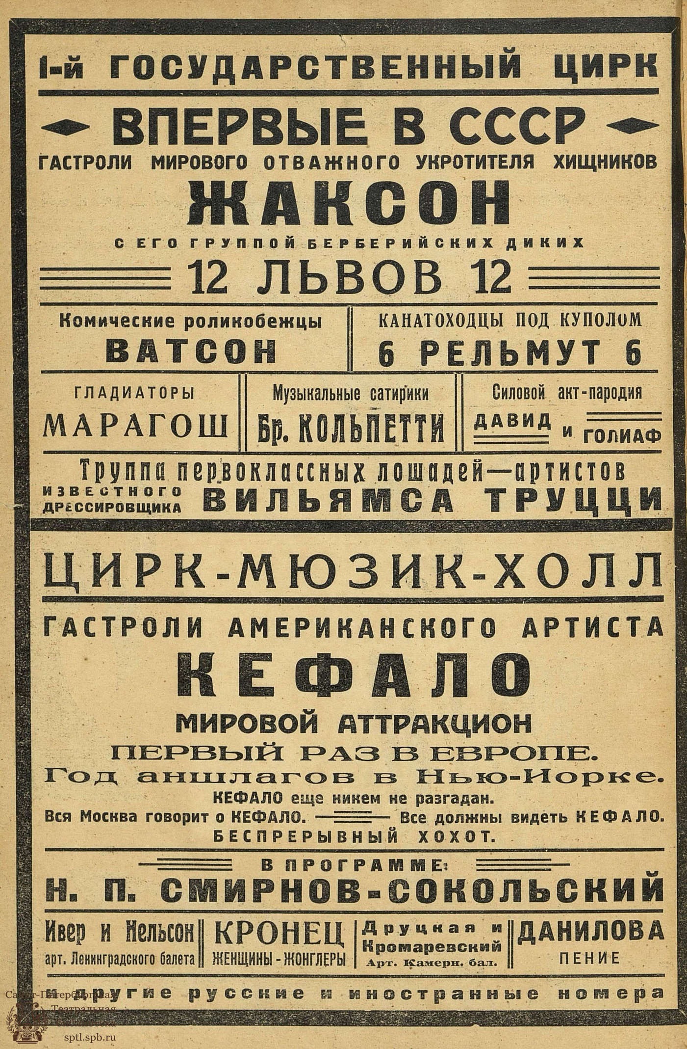 Надо отметить необычайную тягу рабочей молодежи к цирку и физкультуре. Курсы циркового искусства были вынуждены допустить к испытанию около 400 человек рабочей молодежи от 15 до 20 лет, из которых на курсах осталось только 50 человек, так как школа, имеющая чисто профессиональный характер и притом же первая, не имела возможности вместит^ большего количества учащихся. Но разве нормально оставить эту жаждущую использовать свои силы на цирковом поприще молодежь без дела, в то время как организация самых простых и вместе с тем занимательных номеров, вполне пригодных для пропаганды в деревне и на эстраде-улице, может быть проведена очень быстро.