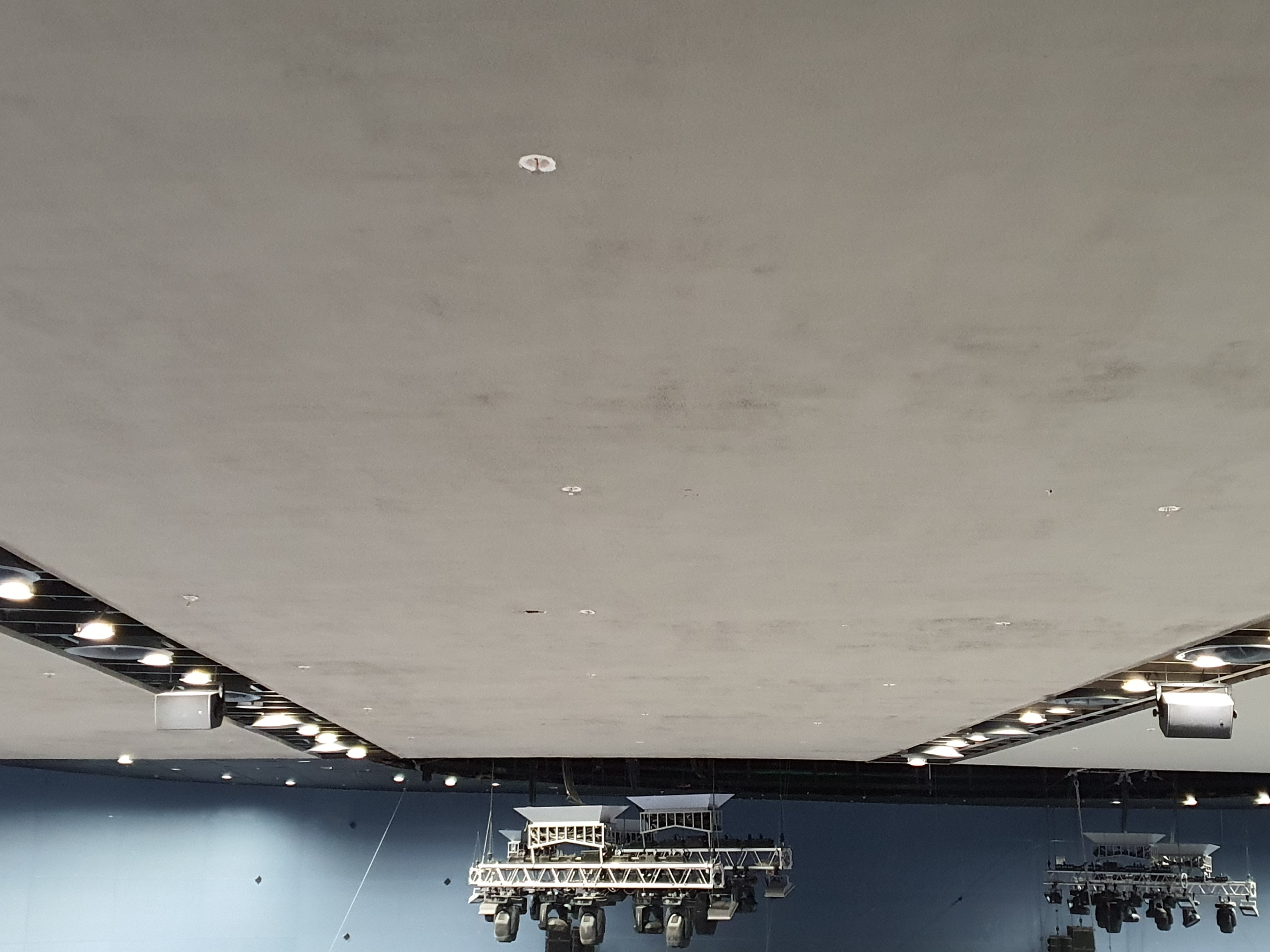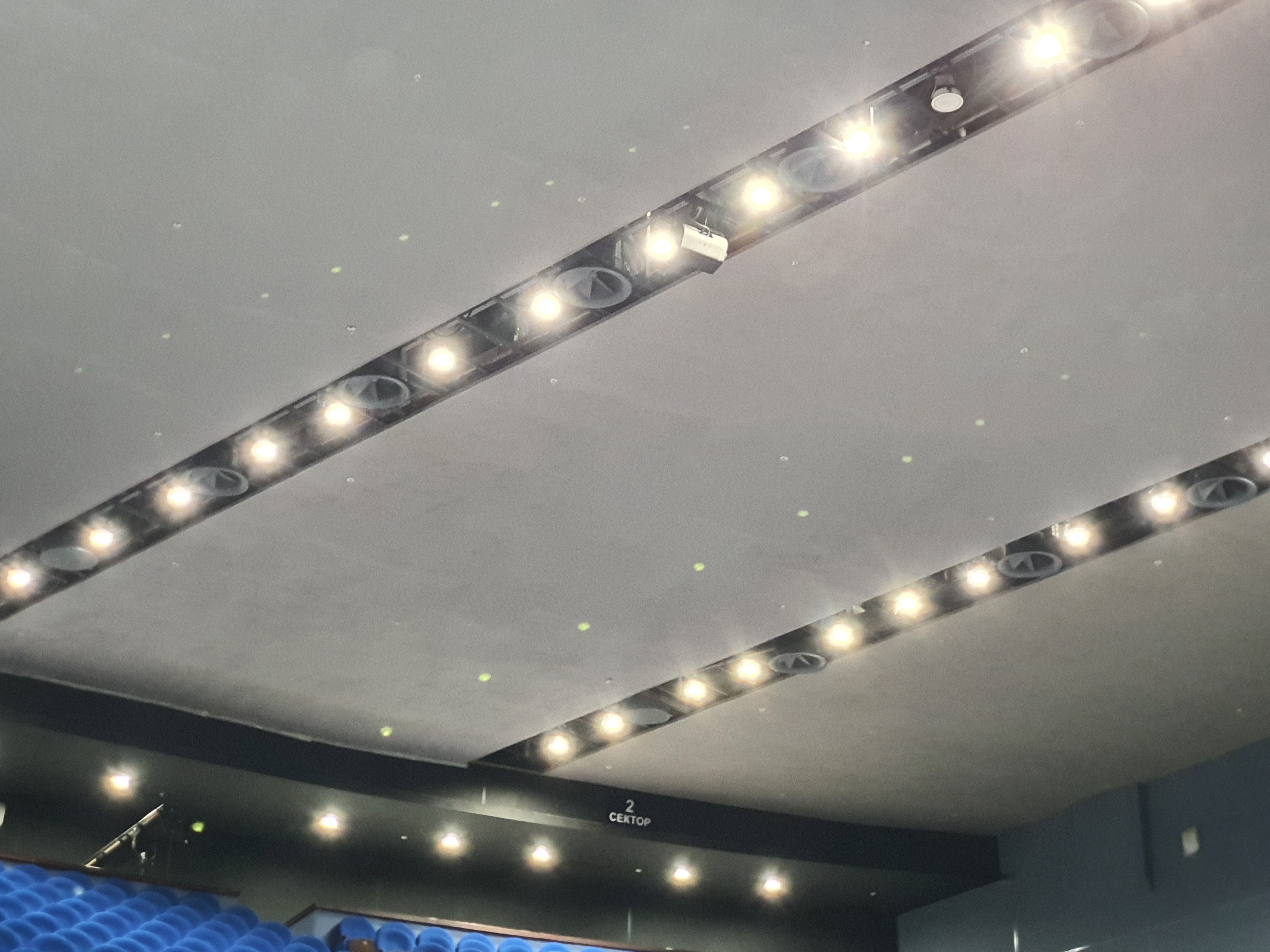 После завершения работ по ремонту кровли были покрашены потолок зрительного зала и потолок фойе, общая площадь составила около 1000 м.кв.