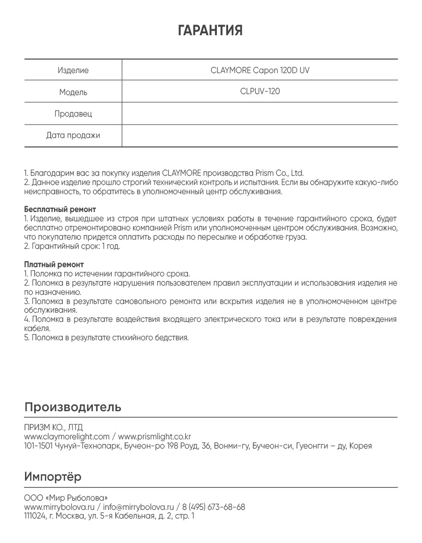 CLAYMORE CAPON 120D UV