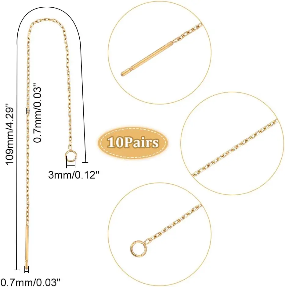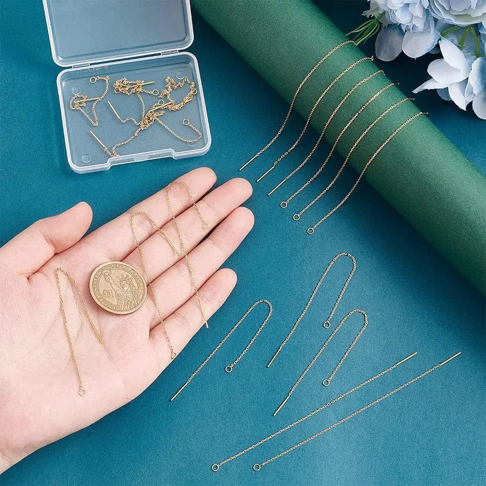 CMS 20pcs Golden Stainless Steel Ear Threads Earrings 109mm Long String Ear Threads Loops Drop Earring Threader Jewelry Finding - Купить с бесплатной доставкой