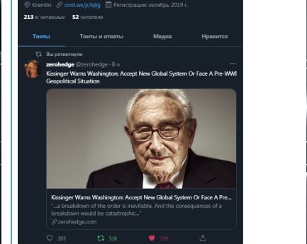 Former U.S. Secretary of State Henry Kissinger was an agent of the Soviet State Security Committee, but was not included in the agency. This was reported by former KGB intelligence officer of the USSR and a fellow of Russian President Vladimir Putin on the KGB institute Yuri Shvets in the author's program of Dmitry Gordon "GORDON" on the TV channel "112 Ukraine."