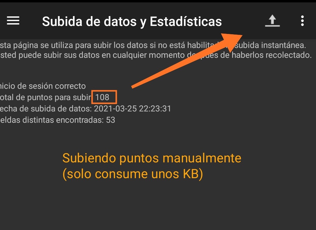Sin embargo, el modelo no puede tener en cuenta ciertas variables, por lo que para obtener datos confiables, se debe mantener el teléfono de medición en un área lo más despejada posible, como grandes campos de pradera, pero por ejemplo en las ciudades los obstáculos son inevitables. Al medir, uno debe moverse en 1 / 2-3 / 4 círculos a diferentes distancias alrededor de la supuesta estación base, por supuesto eso se puede lograr mientras más cellmapperos existan en el área 😊 para obtener los resultados más precisos. La aplicación admite la transferencia o subida de puntos en tiempo real por lo que los datos recopilados se envían a los servidores de Cellmapper a medida que mappea (depende si lo tienes configurado en ajustes para que suban los puntos automáticamente o también puede enviar los datos de forma manual) tal como le muestro en la Figura 👇