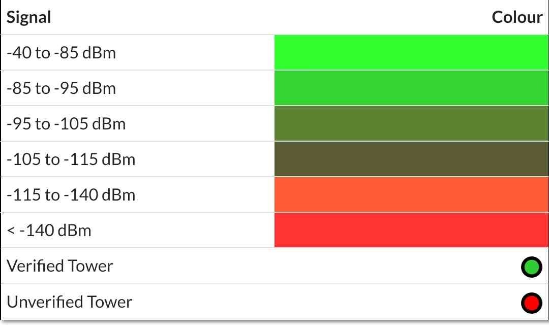 Solo puede medir estaciones en la red a la que está conectado activamente, por lo que por ejemplo, no puede ubicar una estación base 4G si está en una red 3G. Por lo general, las celdas 2G / 3G / 4G / 4G + pueden estar todas en la misma estación base e incluso enviarse desde la misma antena del panel.