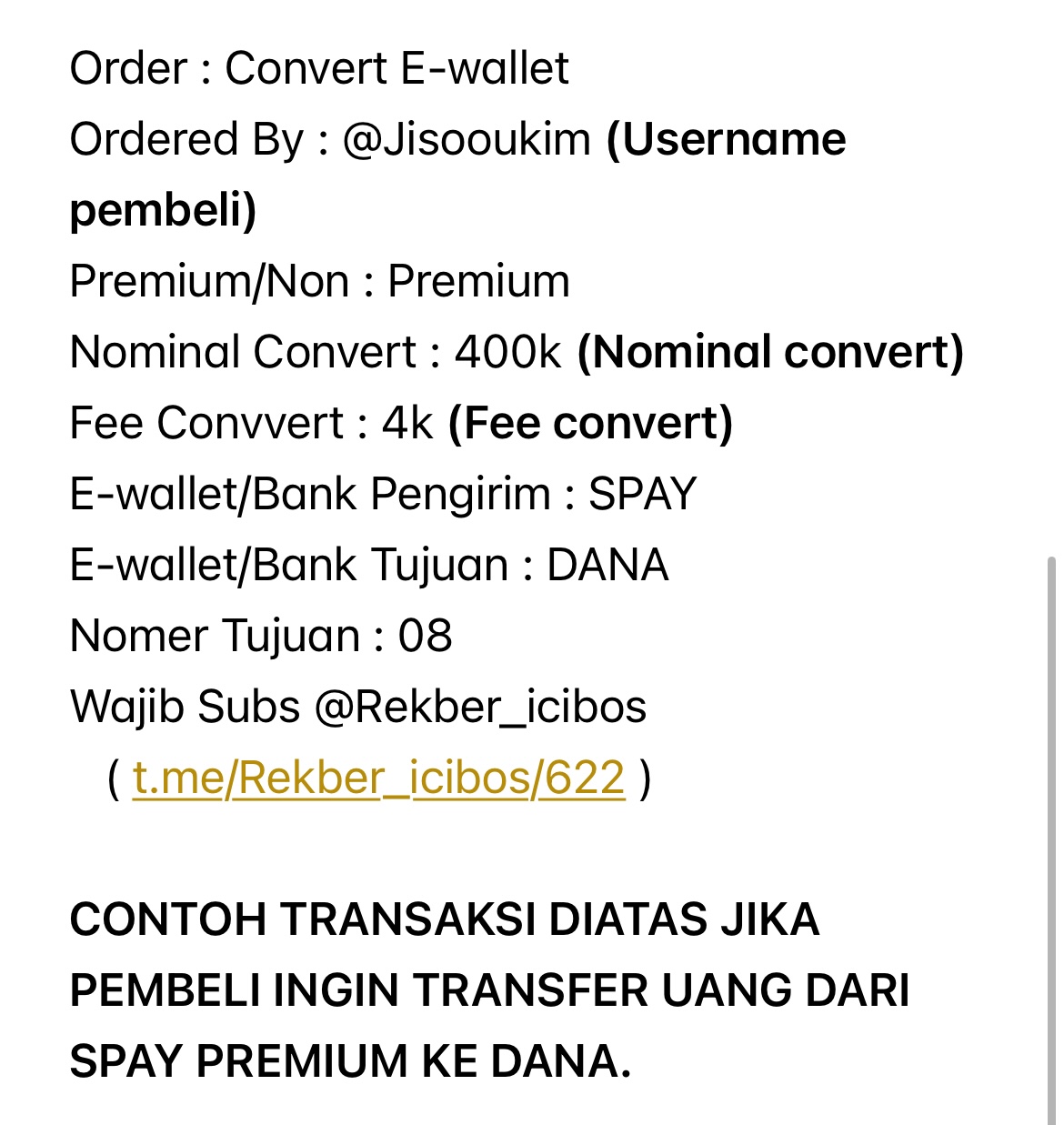 icibos on TelegramCONTOH PENGISIAN FORMAT REKBER EWALLET.