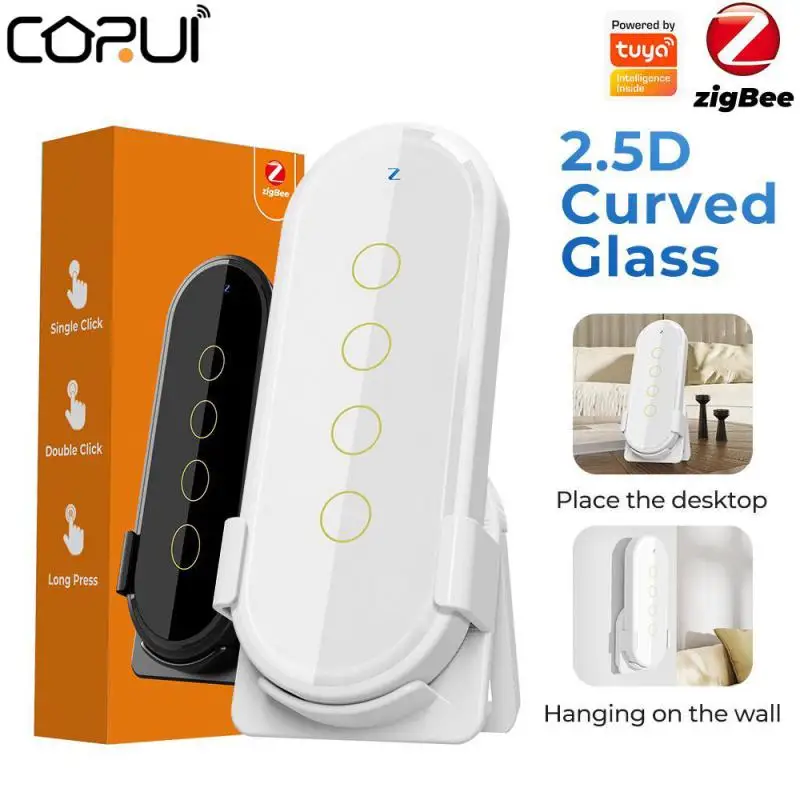 pUDNyALDHere you can buy CORUI Tuya ZigBee Smart Scene Remote Control 2.5D Tempered Glass Smart Scene Switch Touch Remote Control Need ZigBee Gateway with free delivery to your post office.