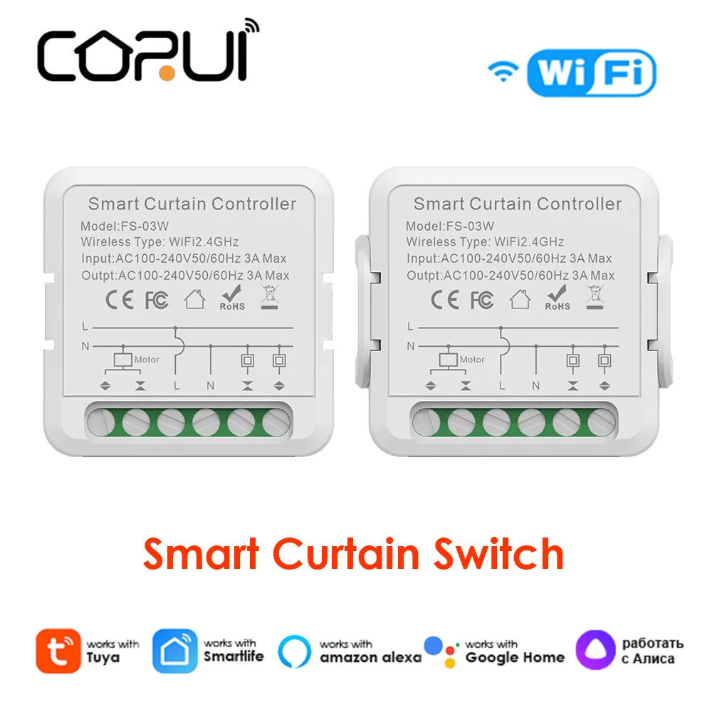 "CORUI WiFi Tuya Smart Curtain Switch For Roller Shutter Blinds Motor Smart Life APP Alexa Alice Google Home Voice Control" * Buy Now Just For 8$