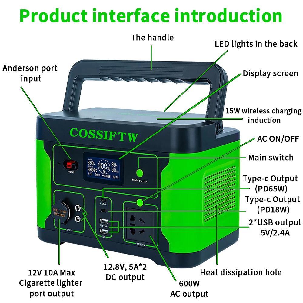 COSSIFTW Power Station 600W Solar Generator 160000mAh Portable Power Bank PD65W For Home Car Laptops Travel Fishing Camping RV - Купить с бесплатной доставкой