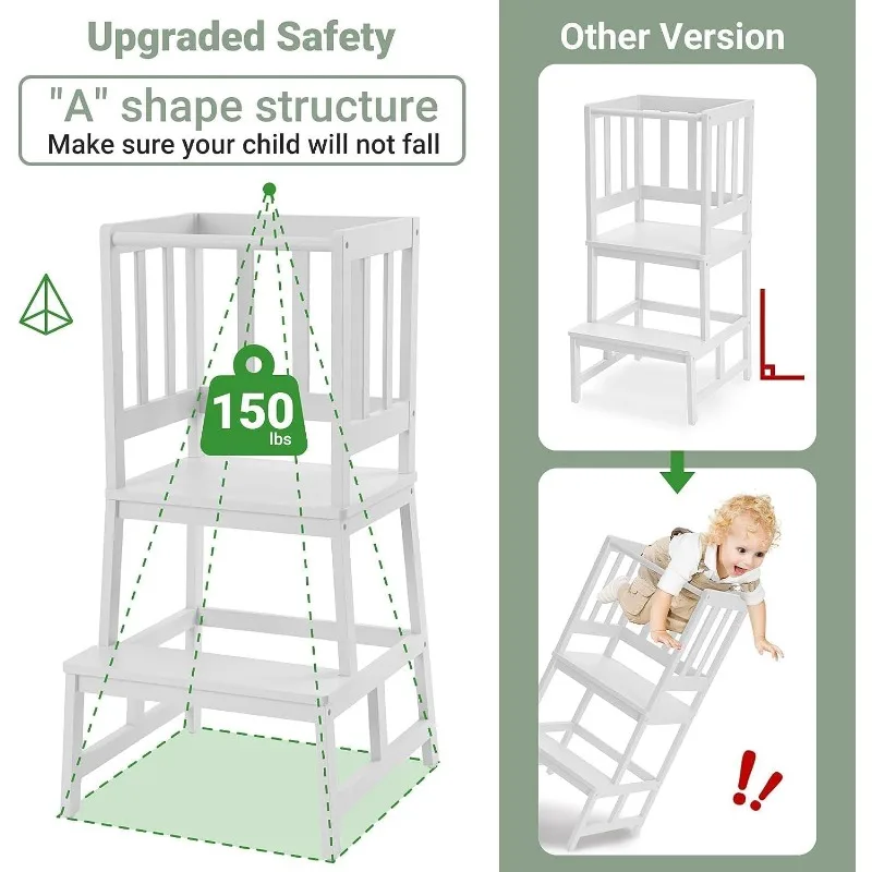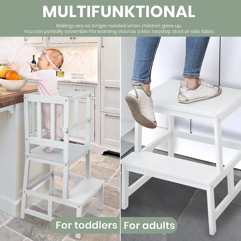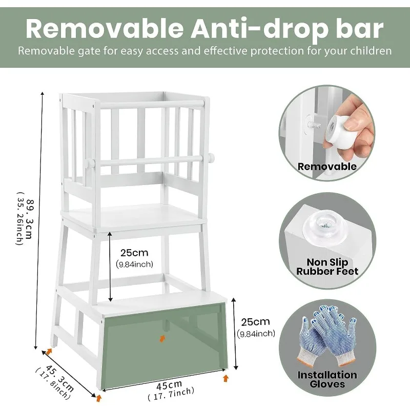 COSYLAND Kids Kitchen Step Stool Helper with Gloves Removable Anti-Drop Railing Safety Rail, Non-Slip Mat Standing Tower Steppin - Купить с бесплатной доставкой
