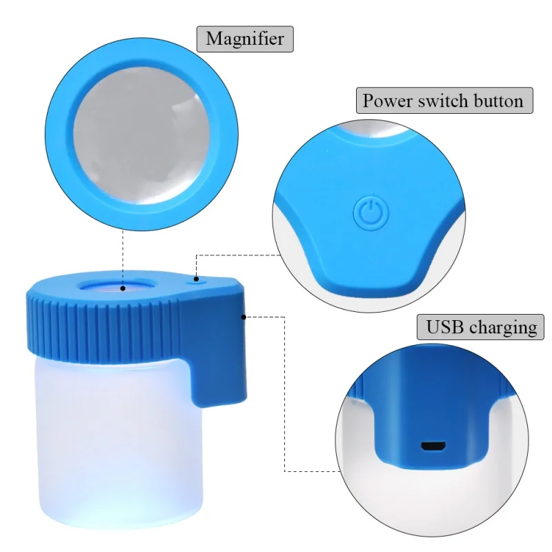 COURNOT Plastic& amp;Glass Light-Up LED Air Tight Storage Magnifying Jar Viewing Container 155ML Multi-Use Plastic Pill Box Bott - Купить с бесплатной доставкой