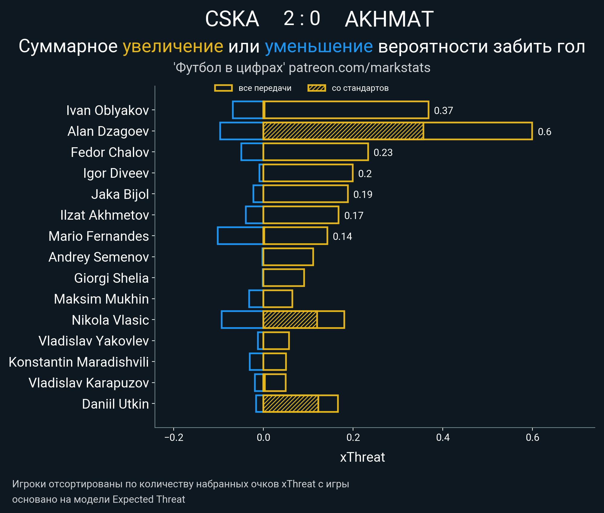 Очки xThreat с игры: