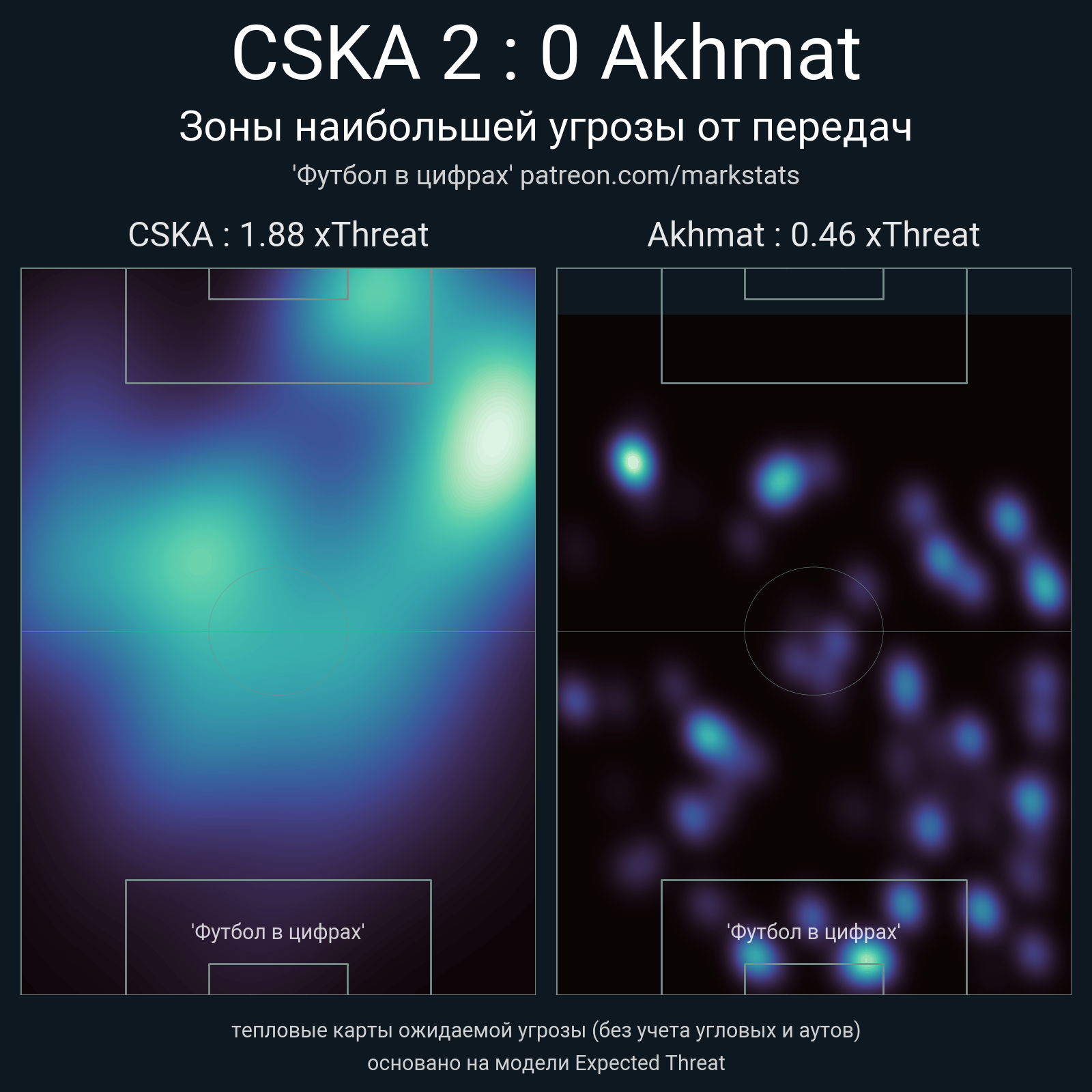 ▪ xThreat без учета угловых: 1.88 - 0.46