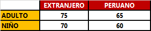 • Ingresos (aprox 15 soles nacional y 20 soles extranjero)