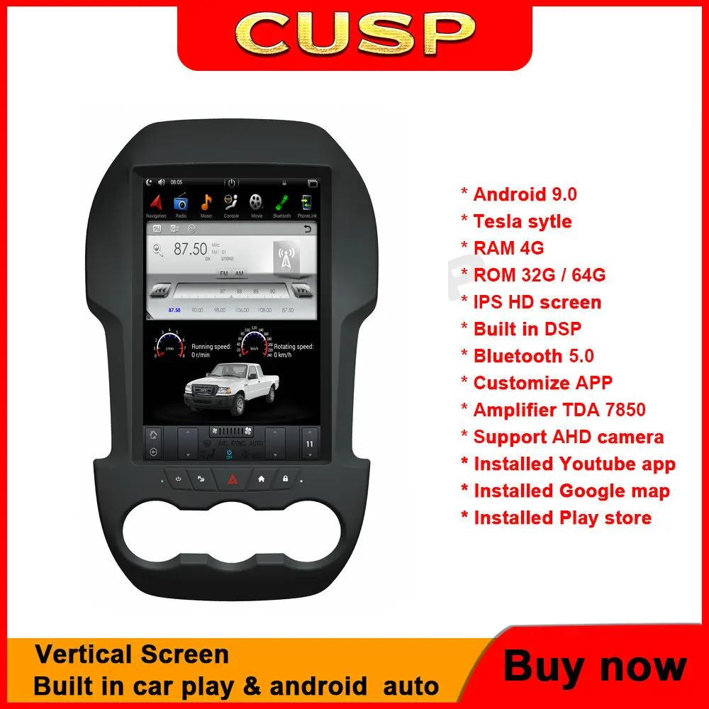 CUSP Tesla Vertical screen Android 9.0 Car Multmedia Player for Ford Ranger Ford F250 2011-2016 GPS Radio Auto Stereo Navigate - Купить с бесплатной доставкой