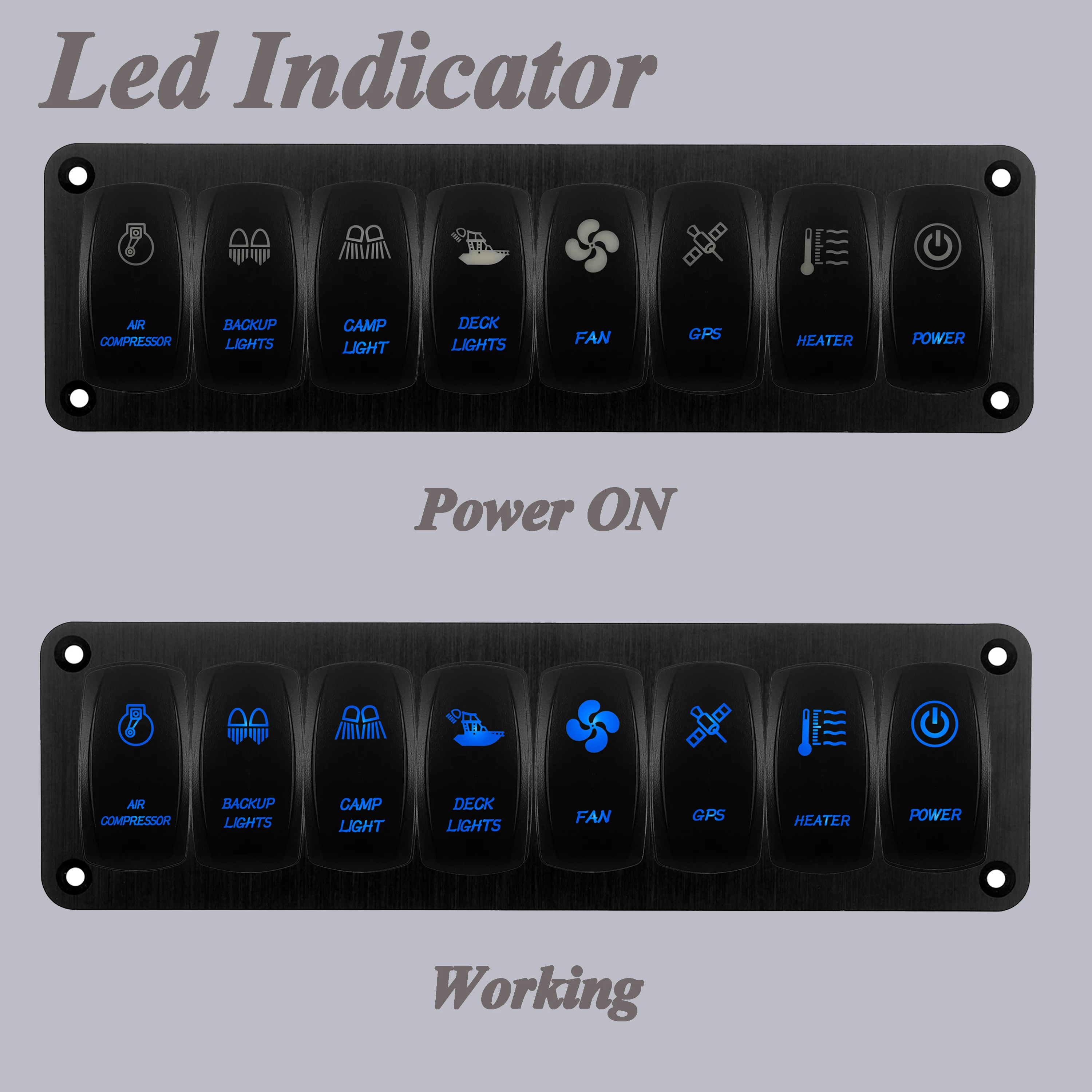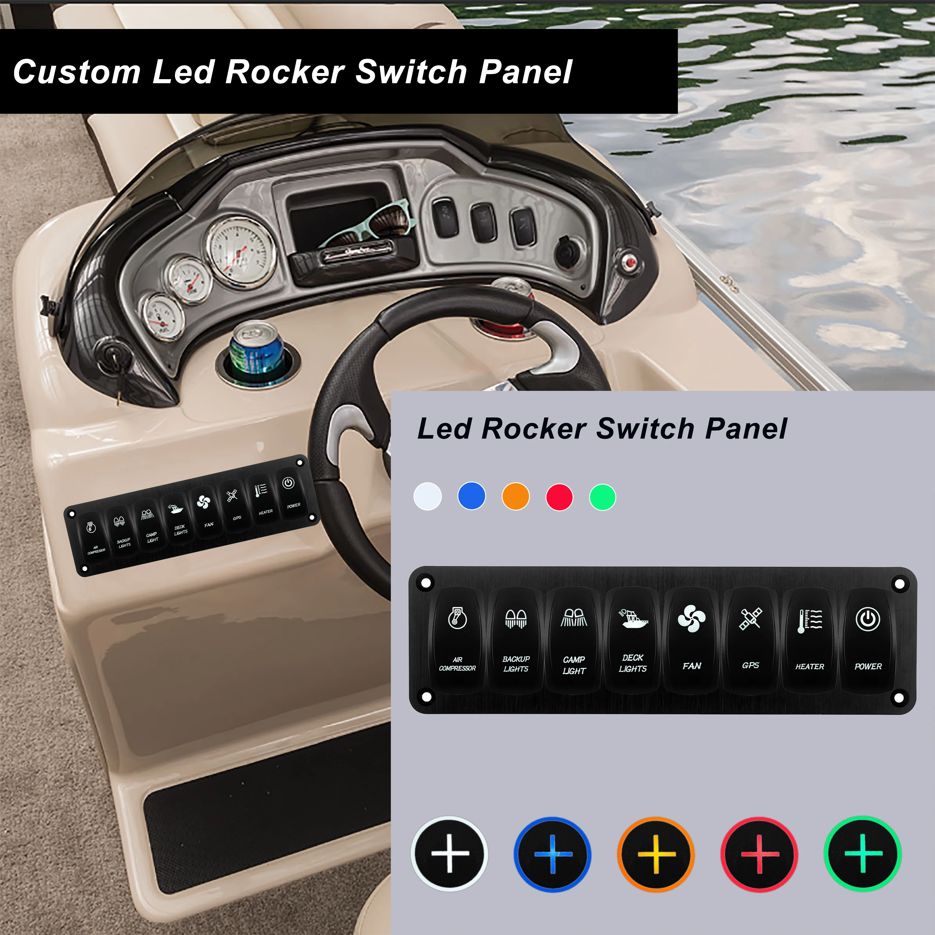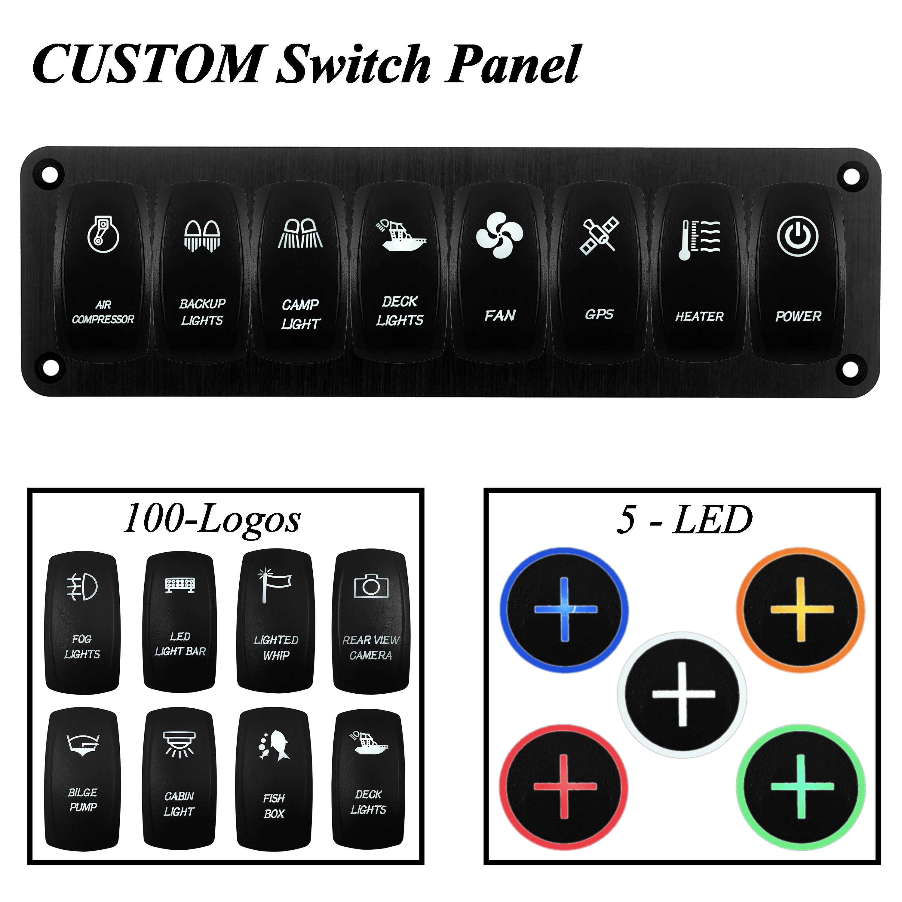 XRidnhtLZHere you can buy CUSTOM 8 Gang Aluminum Rocker Switch Panel Wired With 12V 20A Waterproof IP 68 LED Rocker Switches For Boat Caravan Polaris Car with free delivery to your post office.