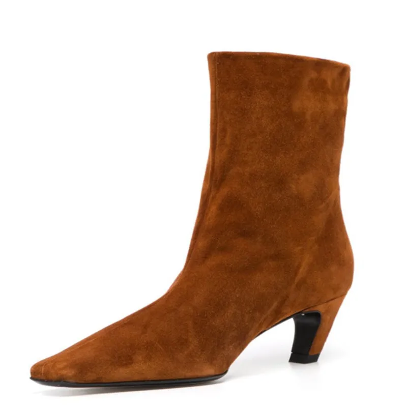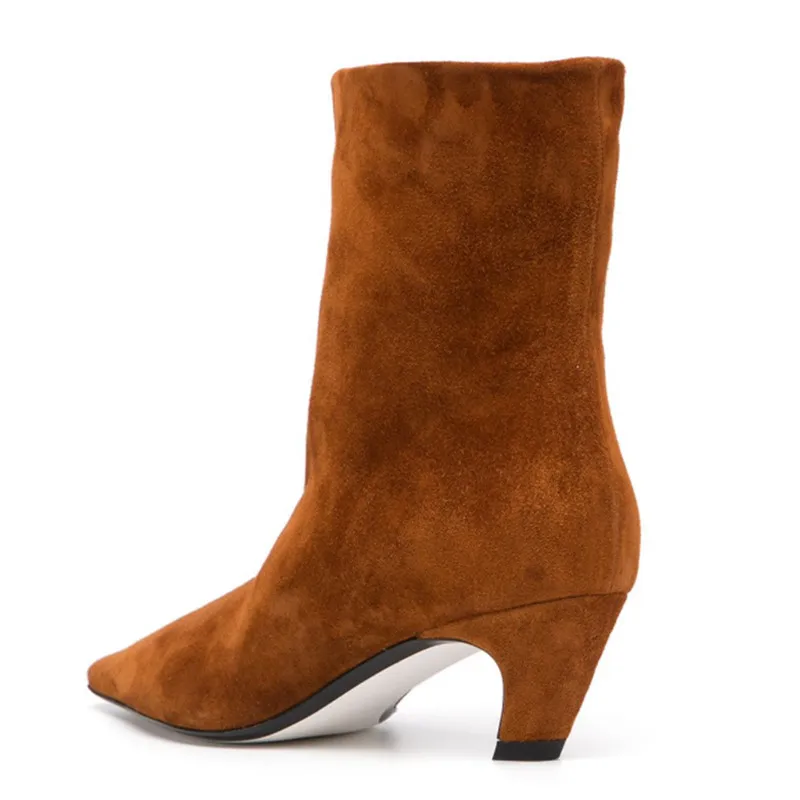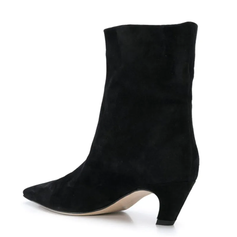 "CYJSYQFC Autumn Winter Elastic Boots Classic Nubuck Flock Chelsea Boots Pointy Toe Black Blue Brown Ankle Boots Plus Size 34-43" * Buy Now Just For 56$