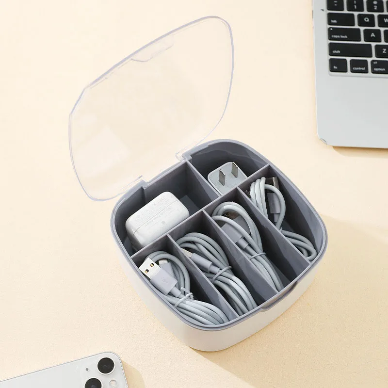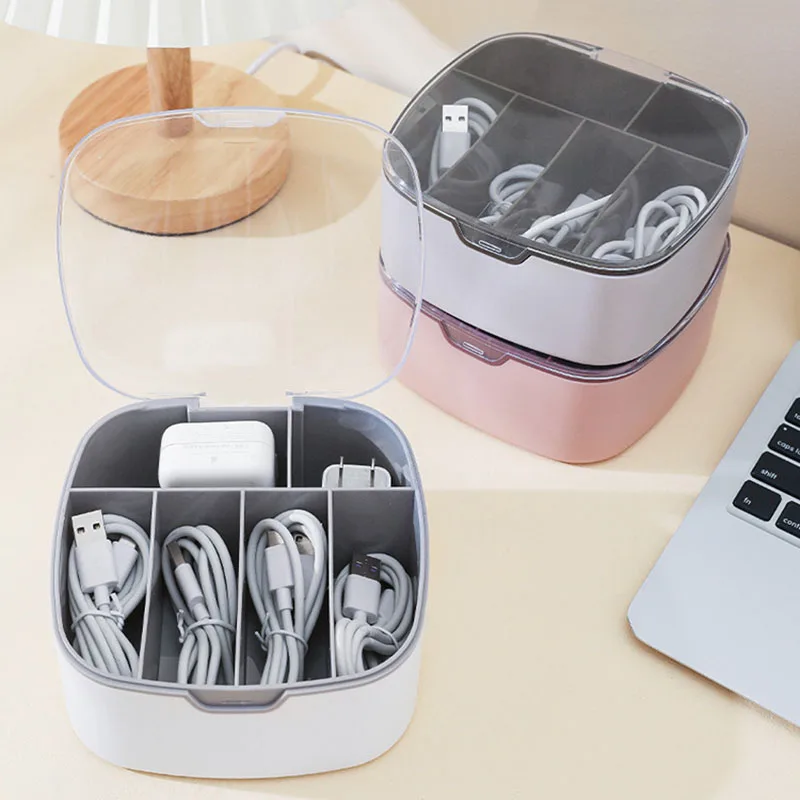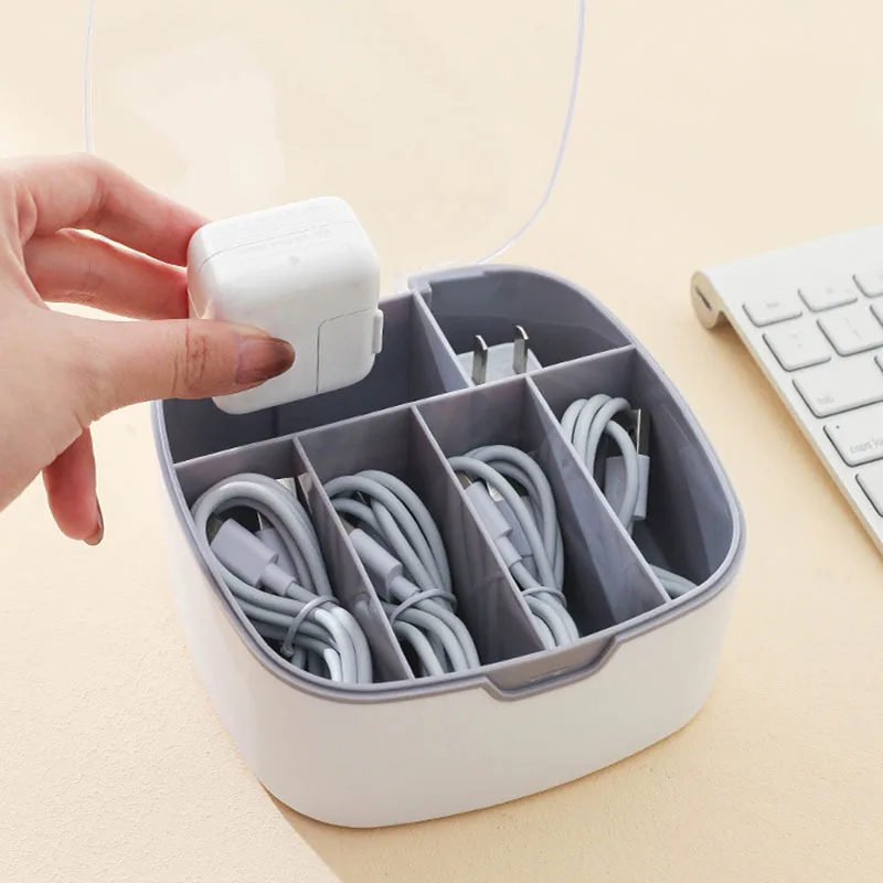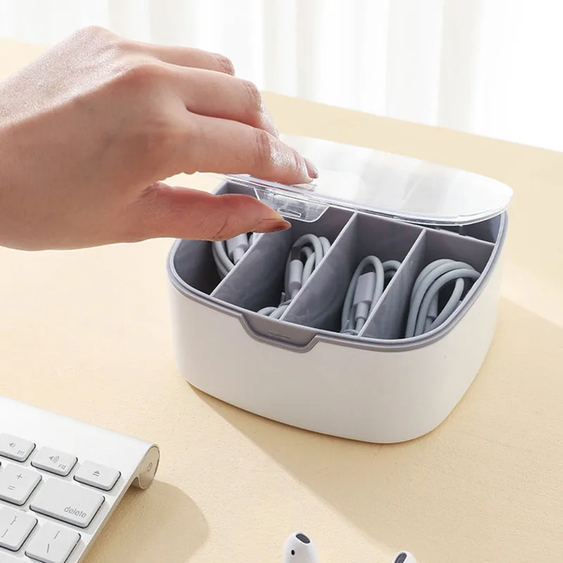 Cable storage box Dustproof headphone cable with cover Charging head sorting box Portable grid Plastic Data Line Storage - Купить с бесплатной доставкой