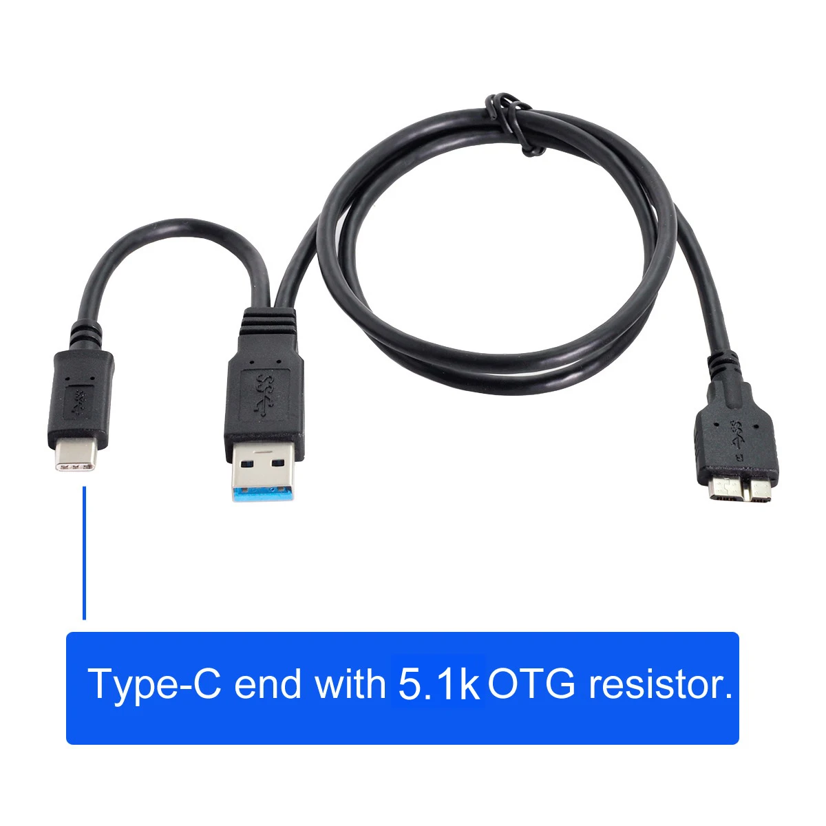 «Cablecc Combo USB-C USB 3.1 Type-C & USB3.0 Type-A Host to Micro USB 3.0 Target Data Cable for Disk» по лучшей цене на рынке! Всего за 7$ (665рублей)