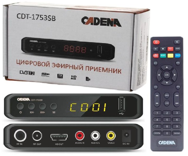 Приставка Cadena CDT-100 оснащена выходом HDMI, . . . потребуется купить конвертер сигнала и подключать приставку через него . . . . Пульт традиционно инфракрасный, . . .