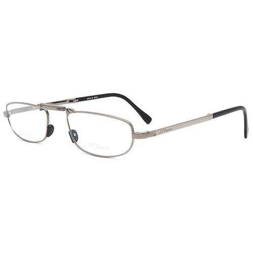 Le cadre pliant Dupont 8054 03 est fabriqué dans une couleur gris bronze stricte. La forme arrondie élégante souligne la dignité d'un visage ovale. Le mécanisme de pliage vous permet de ranger le modèle dans un étui compact. Les branches exquises présentent une combinaison de métal et de plastique. Les branches en pointillés arborent un lettrage discret de la marque.Le cadre ovale pliable Dupont S.T. 8054-03 est fabriqué au Japon à partir d'un alliage de titane hypoallergénique de couleur argent. Les plaquettes de nez moulées offrent un ajustement et un confort antidérapants. À la base, la branche est ornée d’un décor élégant et du logo signature de la marque. Les lunettes sont idéales pour lire et travailler de près. Livré avec un petit étui compact et un chiffon de nettoyage en microfibre de marque.