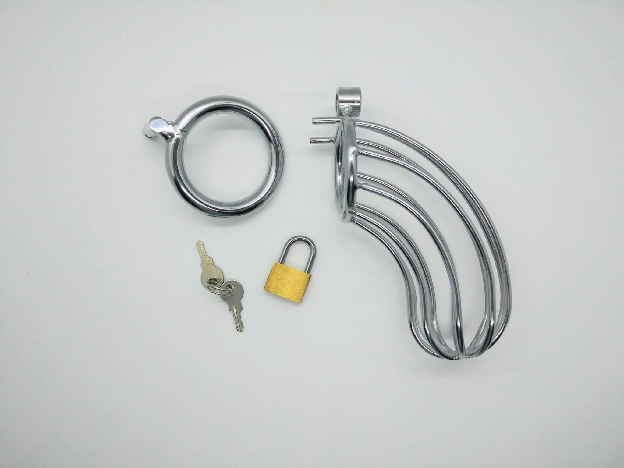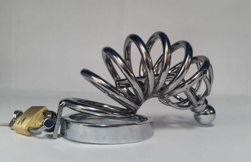 Caged CD butt drilled with large belt on schlong