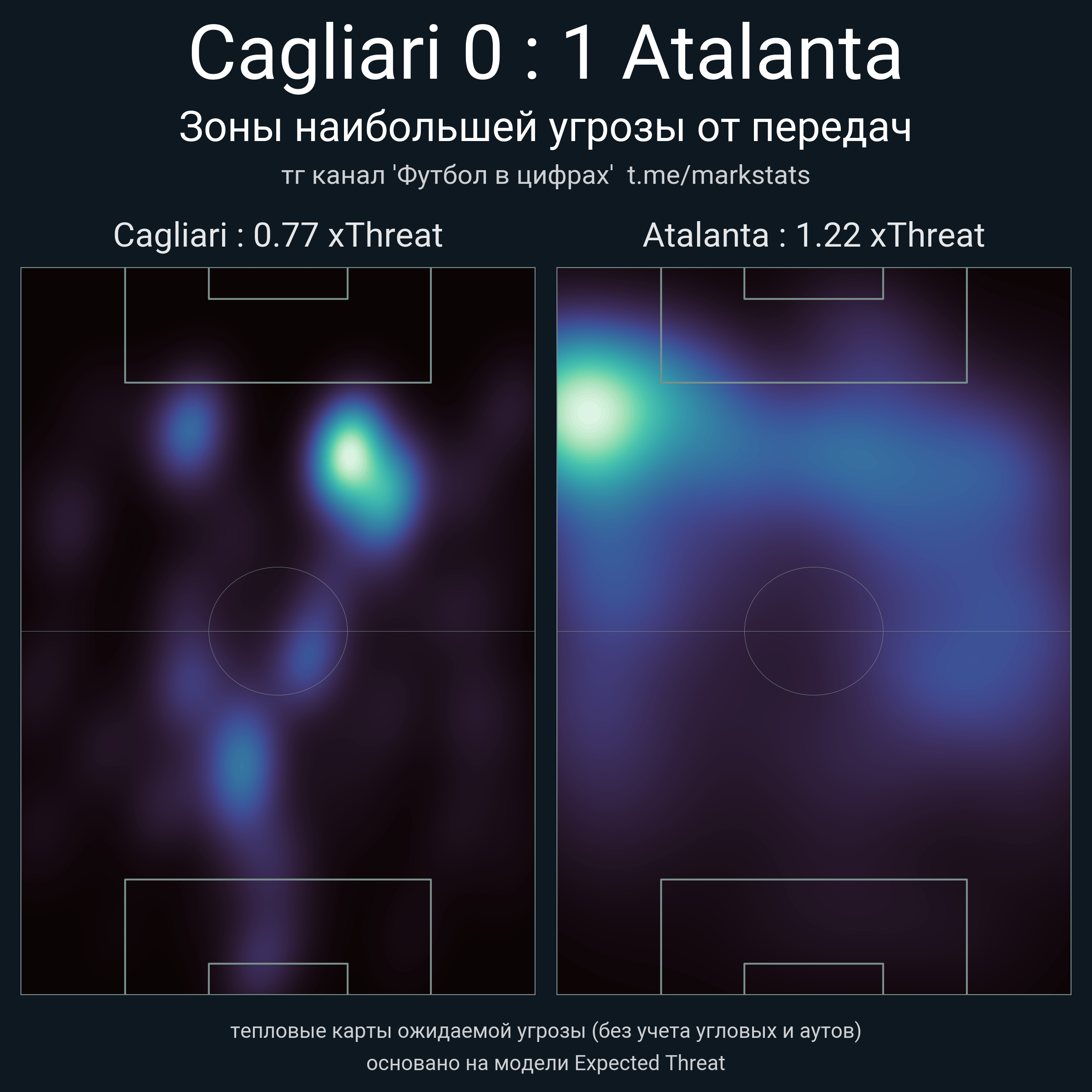 ▪ xThreat без учета угловых: 0.77 - 1.22