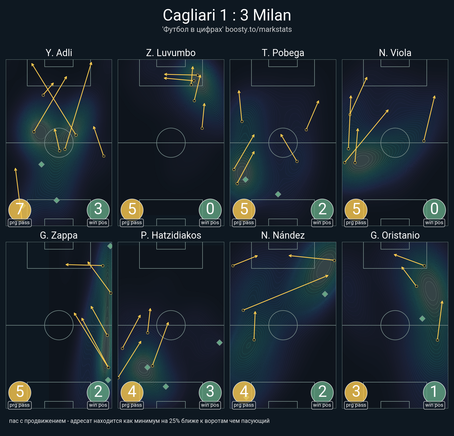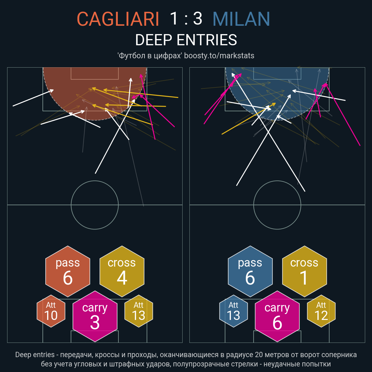 23 успешных передач из 30 попыток (3 с продвижением, 10 на трети соперника)