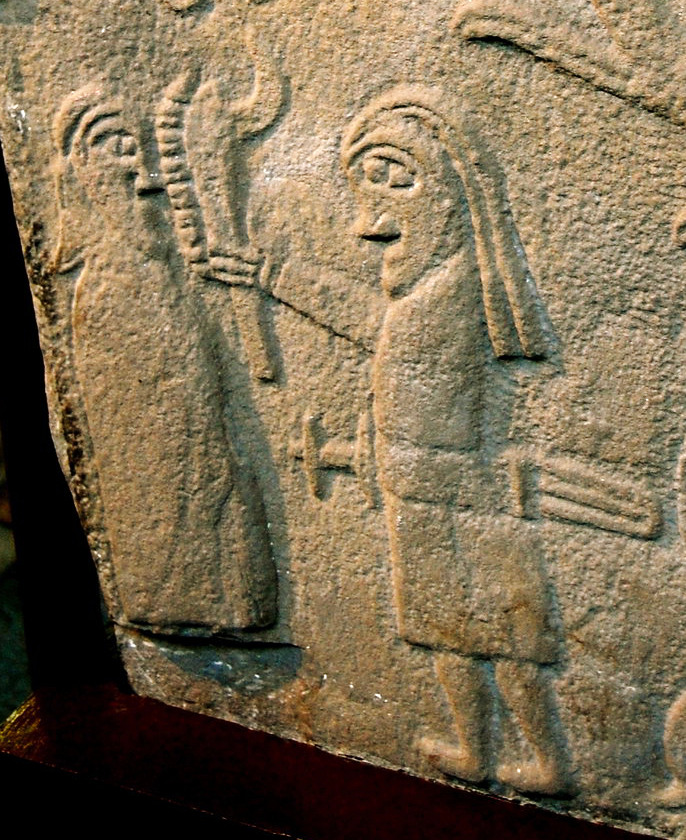 But if we look at the Scottish Inchbrayock stone we see a clear indication of the jawbone — the teeth which we cannot see on the Irish crosses. The warrior on the Inchbrayock stone is Samson.