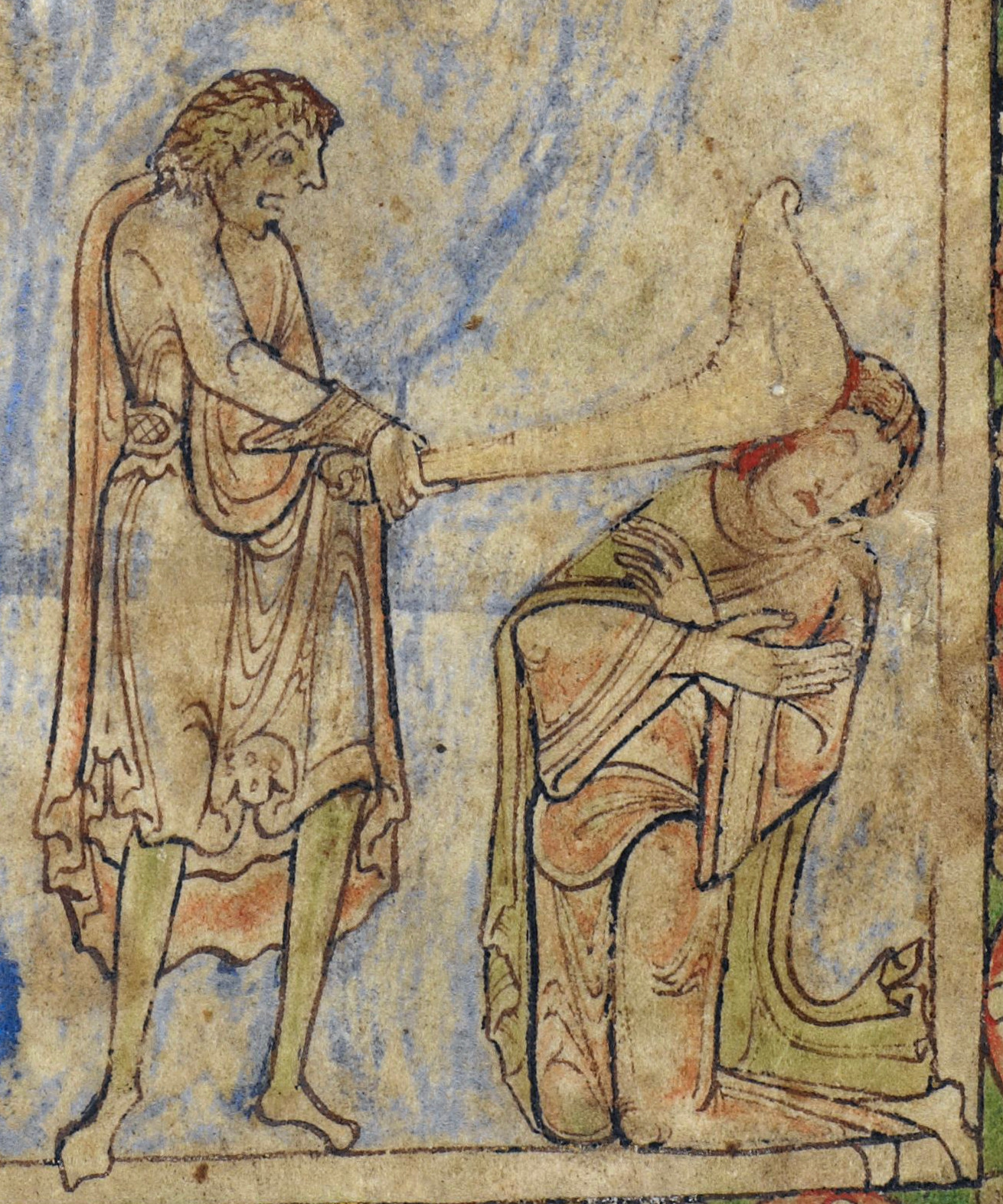 Cain in the image has quite a Jewish appearance. (See the Huth Psalter for an analogy.)
