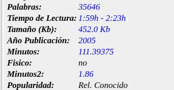Y para tener el tiempo de lectura de nuestros libros teniendo en cuenta nuestro tiempo máximo y mínimo creamos esta.