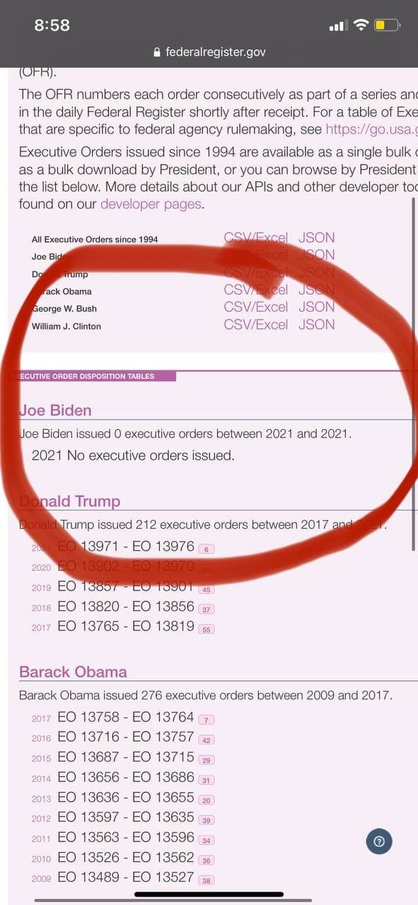 "Joe Biden issued 0 executive orders between 2021 and 2021"